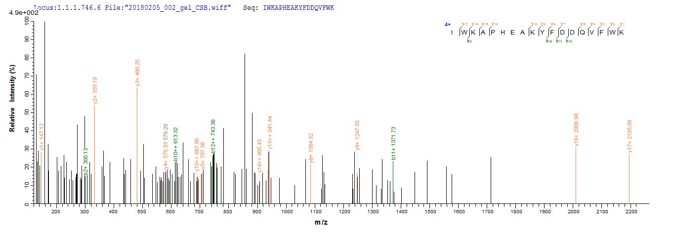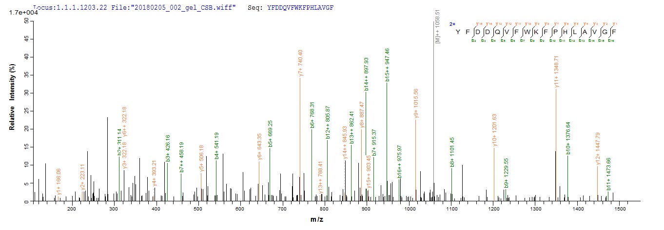 Based on the SEQUEST from database of Mammalian Cell host and target protein, the LC-MS/MS Analysis result of CSB-MP019677HU could indicate that this peptide derived from Mammalian Cell-expressed Homo sapiens (Human) RHD.