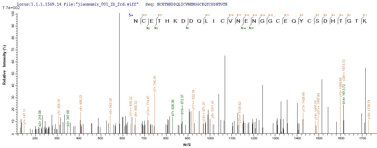 Based on the SEQUEST from database of E.coli host and target protein, the LC-MS/MS Analysis result of CSB-EP007930HU could indicate that this peptide derived from E.coli-expressed Homo sapiens (Human) F7.