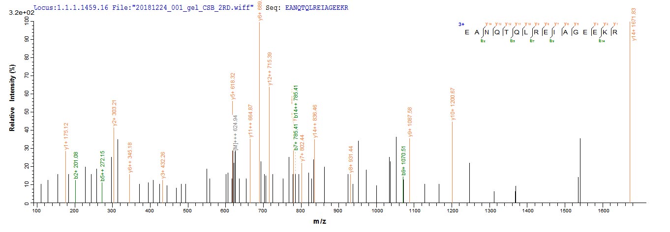 Based on the SEQUEST from database of Yeast host and target protein, the LC-MS/MS Analysis result of CSB-YP409861HU could indicate that this peptide derived from Yeast-expressed Homo sapiens (Human) COL6A6.