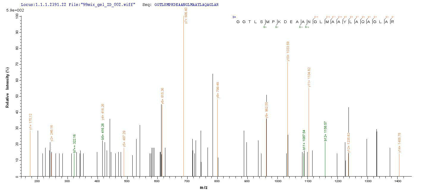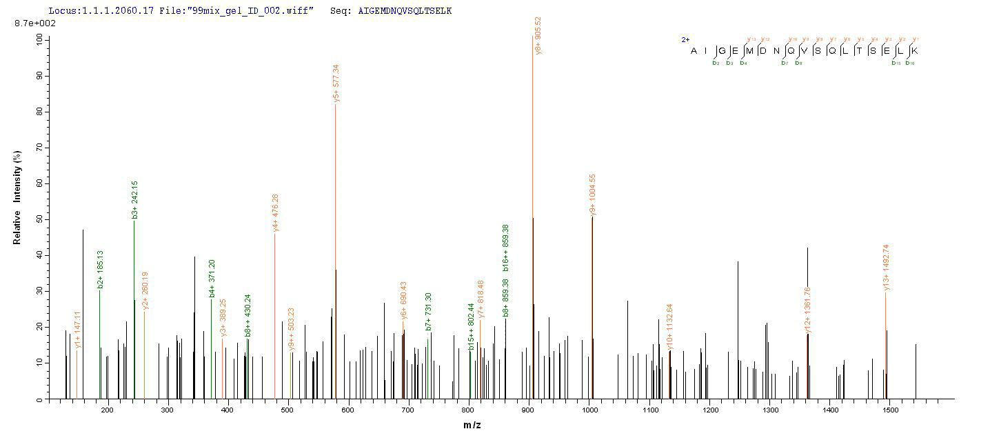 Based on the SEQUEST from database of Mammalian Cell host and target protein, the LC-MS/MS Analysis result of CSB-MP861154HU could indicate that this peptide derived from Mammalian Cell-expressed Homo sapiens (Human) COLEC11.
