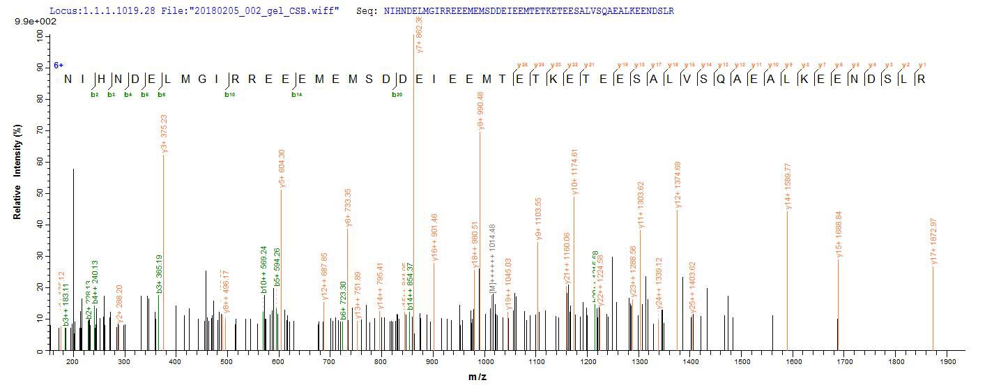 Based on the SEQUEST from database of E.coli host and target protein, the LC-MS/MS Analysis result of CSB-EP007677HU1 could indicate that this peptide derived from E.coli-expressed Homo sapiens (Human) ENOX2.