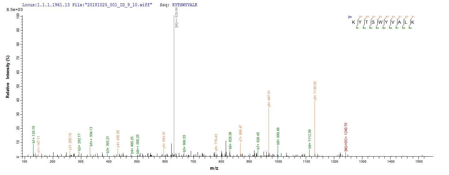 Based on the SEQUEST from database of Yeast host and target protein, the LC-MS/MS Analysis result of CSB-YP008625HU could indicate that this peptide derived from Yeast-expressed Homo sapiens (Human) FGF2.