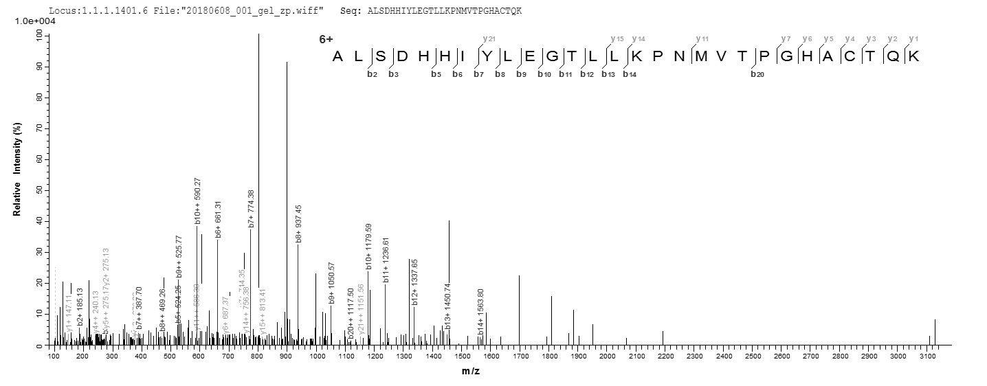 Based on the SEQUEST from database of E.coli host and target protein, the LC-MS/MS Analysis result of CSB-RP000154h could indicate that this peptide derived from E.coli-expressed Homo sapiens (Human) ALDOA.