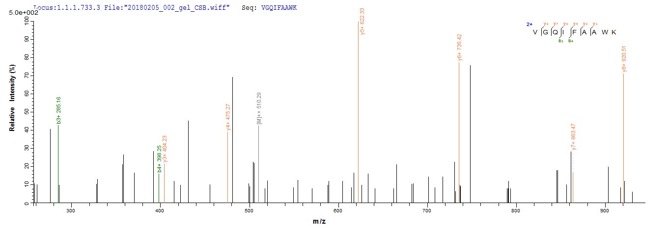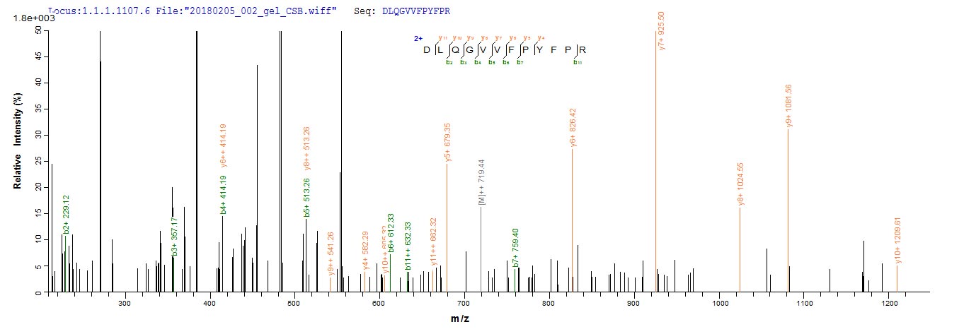 Based on the SEQUEST from database of Mammalian Cell host and target protein, the LC-MS/MS Analysis result of CSB-MP010130HU could indicate that this peptide derived from Mammalian Cell-expressed Homo sapiens (Human) HAPLN1.