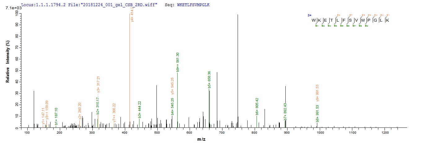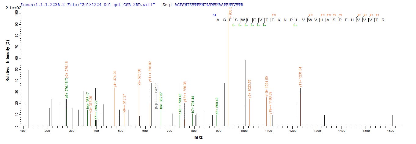 Based on the SEQUEST from database of Yeast host and target protein, the LC-MS/MS Analysis result of CSB-YP617923HU could indicate that this peptide derived from Yeast-expressed Homo sapiens (Human) ITIH4.