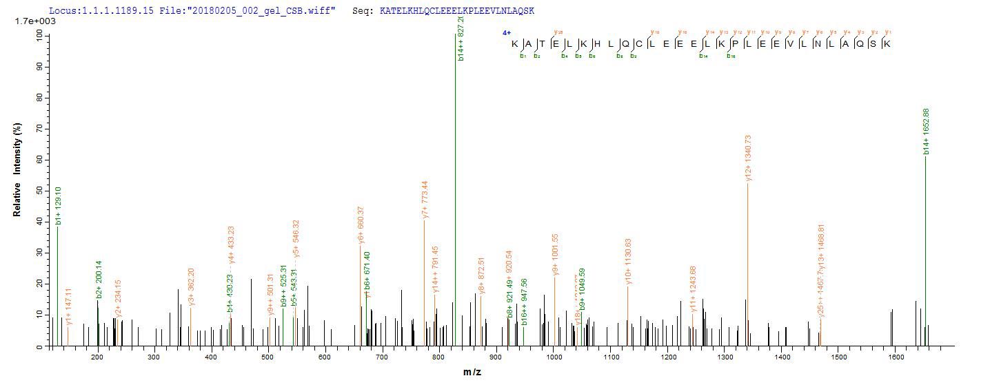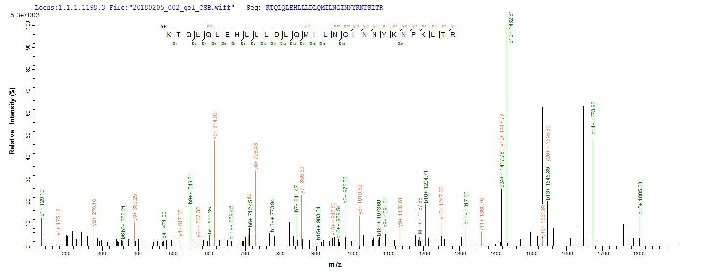 Based on the SEQUEST from database of Yeast host and target protein, the LC-MS/MS Analysis result of CSB-YP011629HU could indicate that this peptide derived from Yeast-expressed Homo sapiens (Human) IL2.