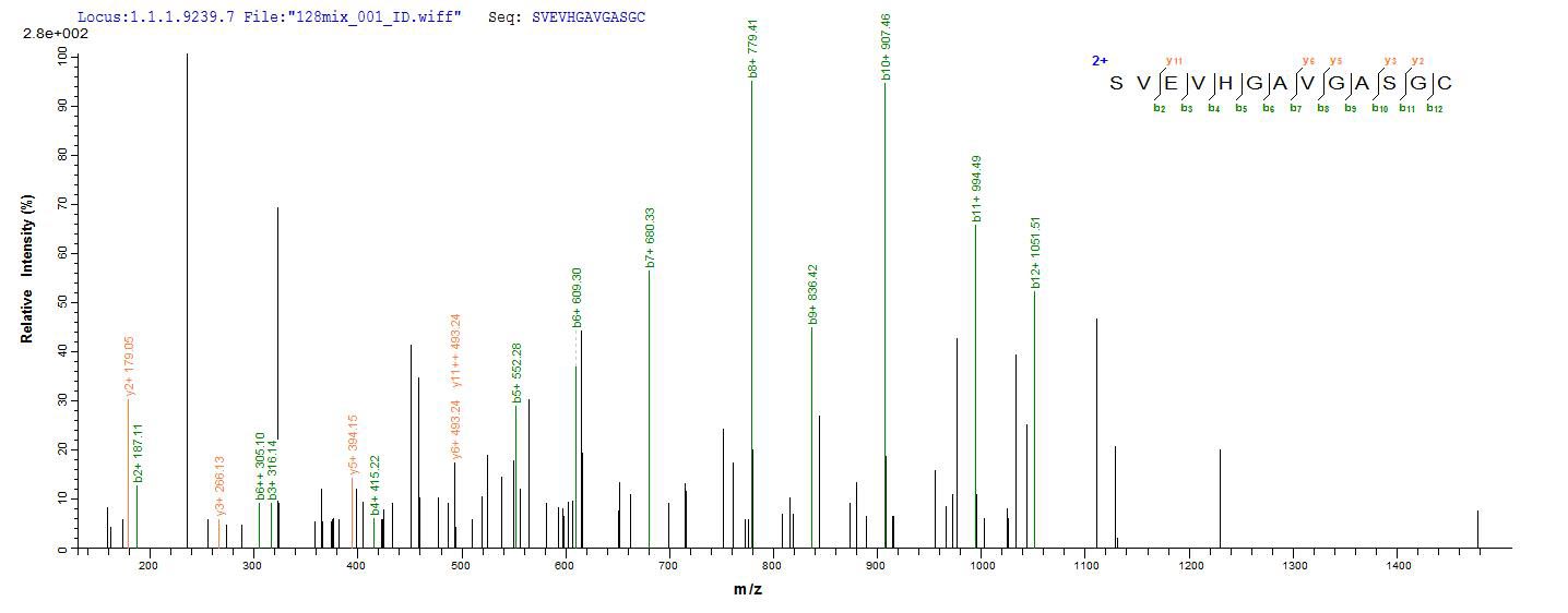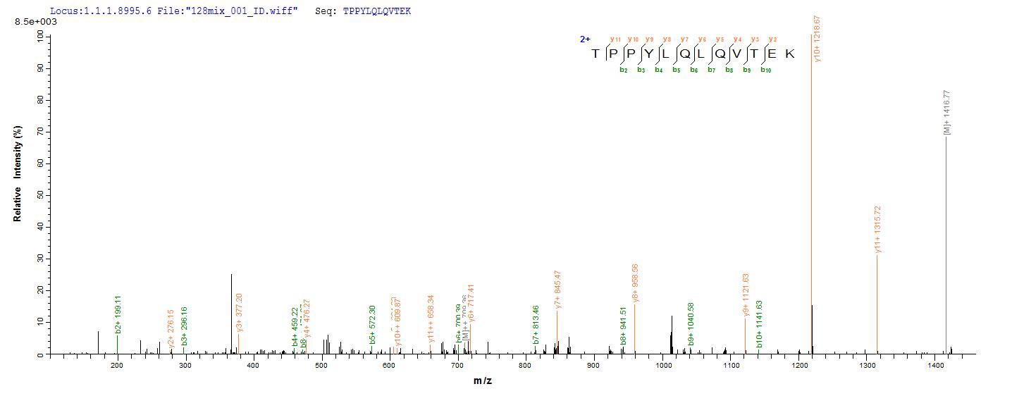 Based on the SEQUEST from database of E.coli host and target protein, the LC-MS/MS Analysis result of CSB-EP012729HU could indicate that this peptide derived from E.coli-expressed Homo sapiens (Human) LAMA5.