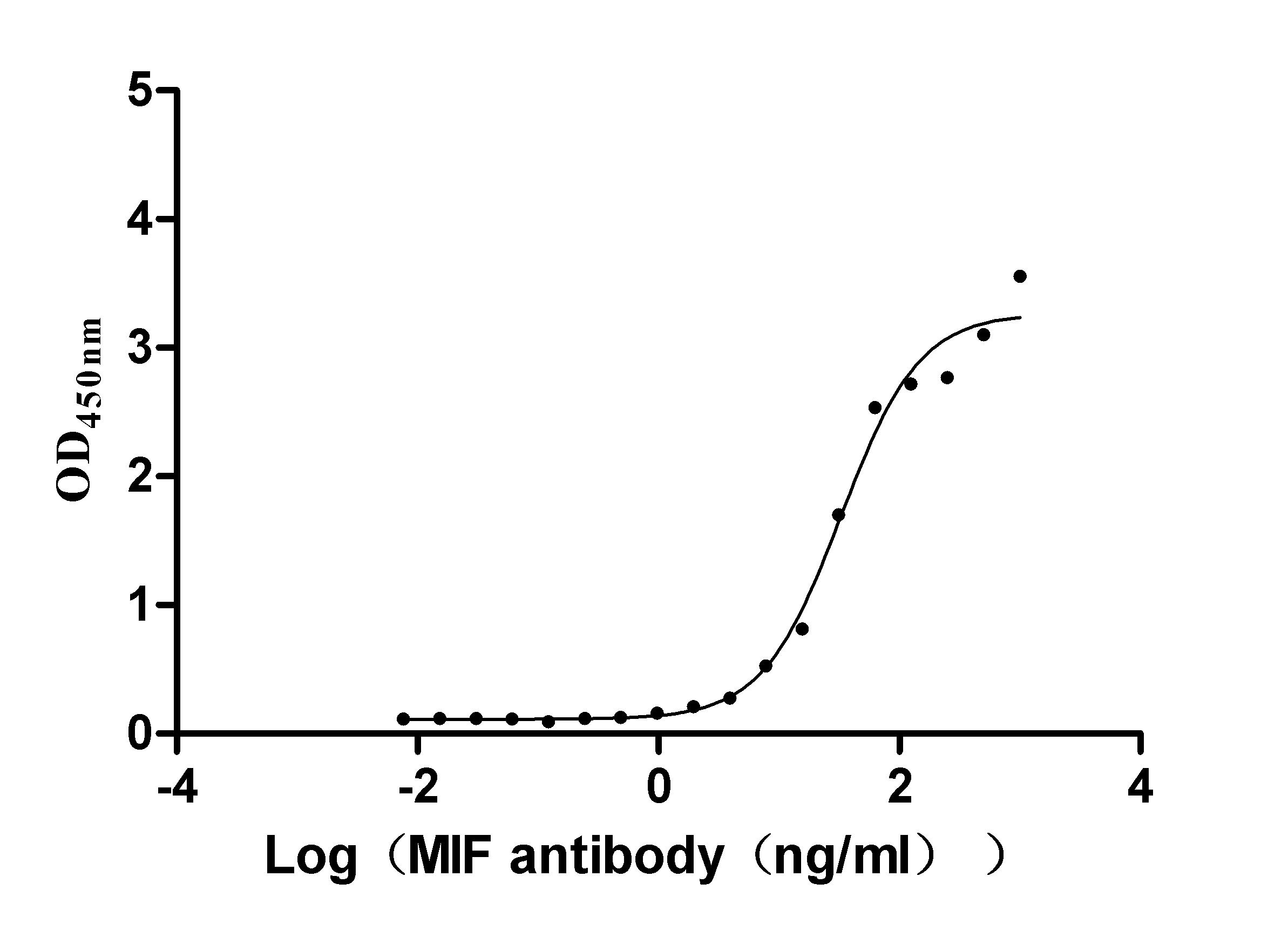 Measured by its binding ability in a functional ELISA. Immobilized MIF at 2 μg/ml can bind Anti- MIF Rabbit Monoclonal Antibody(CSB-RA146975A0HU), the EC50 is 49.61-69.45 ng/ml. Biological Activity Assay