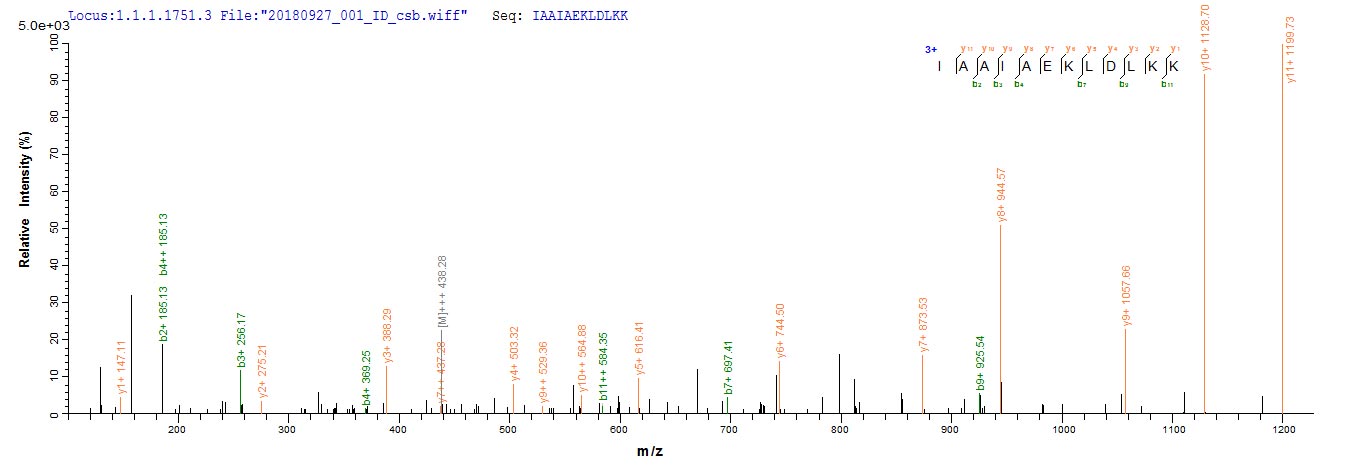 Based on the SEQUEST from database of E.coli host and target protein, the LC-MS/MS Analysis result of CSB-EP622514HU could indicate that this peptide derived from E.coli-expressed Homo sapiens (Human) POU4F2.