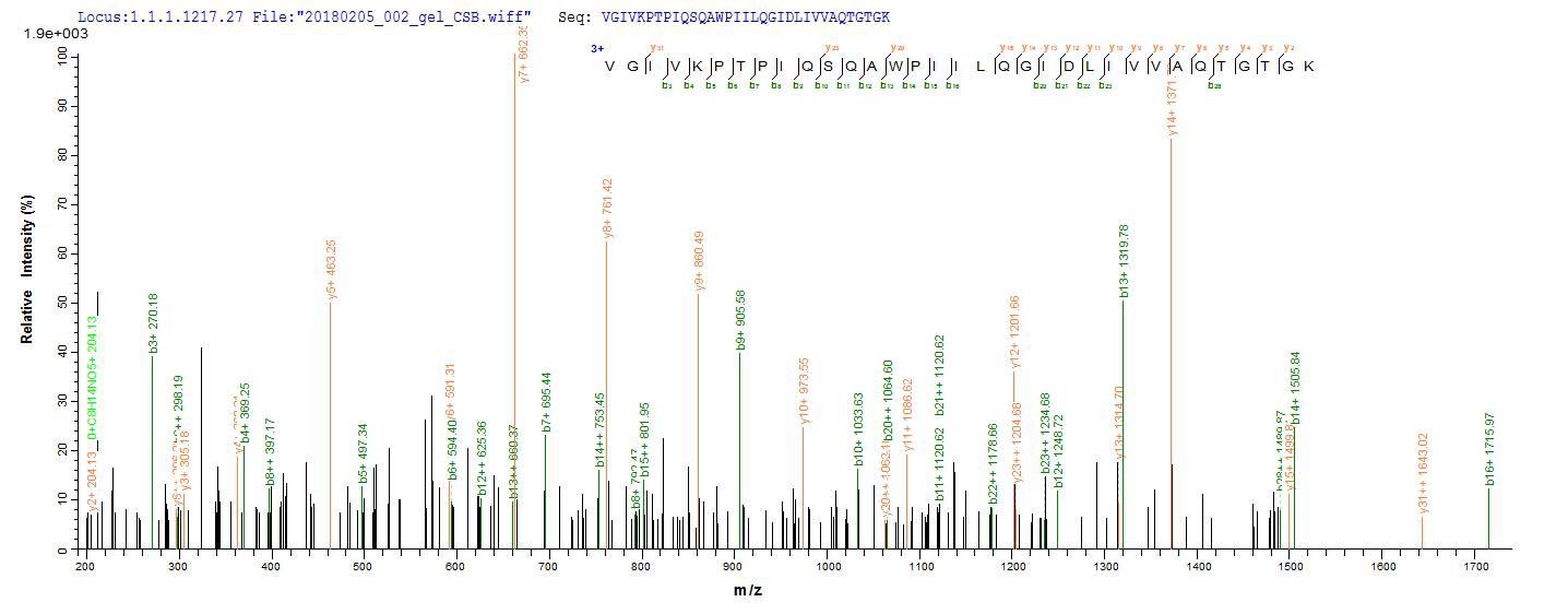 Based on the SEQUEST from database of E.coli host and target protein, the LC-MS/MS Analysis result of CSB-EP773024HU could indicate that this peptide derived from E.coli-expressed Homo sapiens (Human) DDX53.