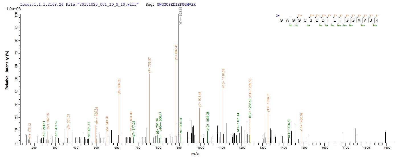 Based on the SEQUEST from database of E.coli host and target protein, the LC-MS/MS Analysis result of CSB-EP026136HU could indicate that this peptide derived from E.coli-expressed Homo sapiens (Human) WNT3A.