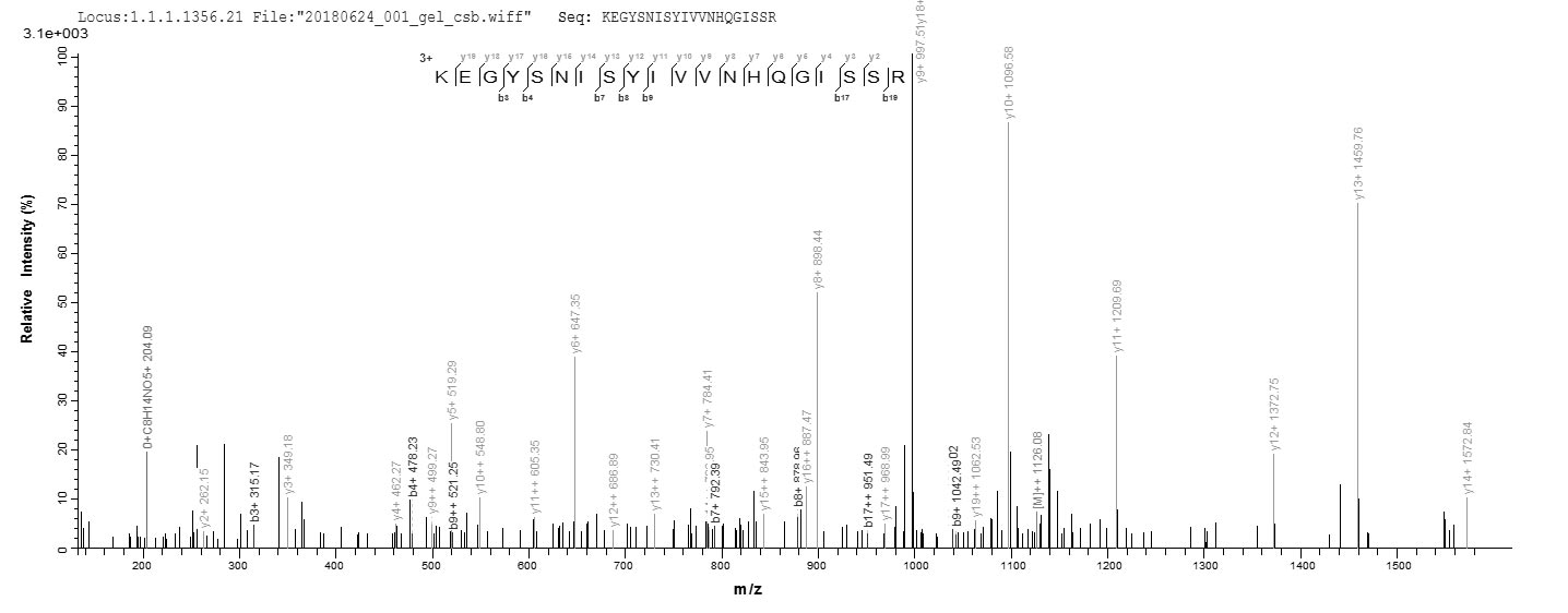 Based on the SEQUEST from database of Yeast host and target protein, the LC-MS/MS Analysis result of CSB-YP021018HU could indicate that this peptide derived from Yeast-expressed Homo sapiens (Human) SEPP1.