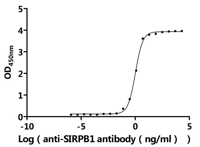 Measured by its binding ability in a functional ELISA.Immobilized Human SIRPB1 at 2 μg/ml can bind anti-SIRPB1 recombinant antibody(CSB-RA021335MA1HU).The EC50 is 0.9675-1.114 ng/mL. Biological Activity Assay -