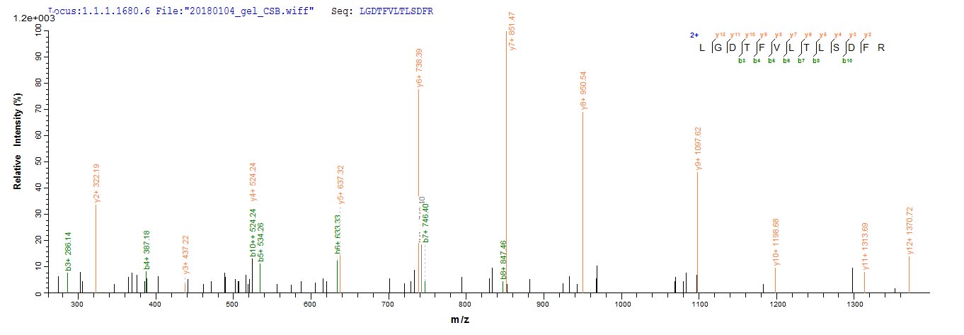 Based on the SEQUEST from database of Mammalian Cell host and target protein, the LC-MS/MS Analysis result of CSB-MP004966HU could indicate that this peptide derived from Mammalian Cell-expressed Homo sapiens (Human) CD8A.