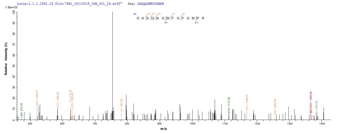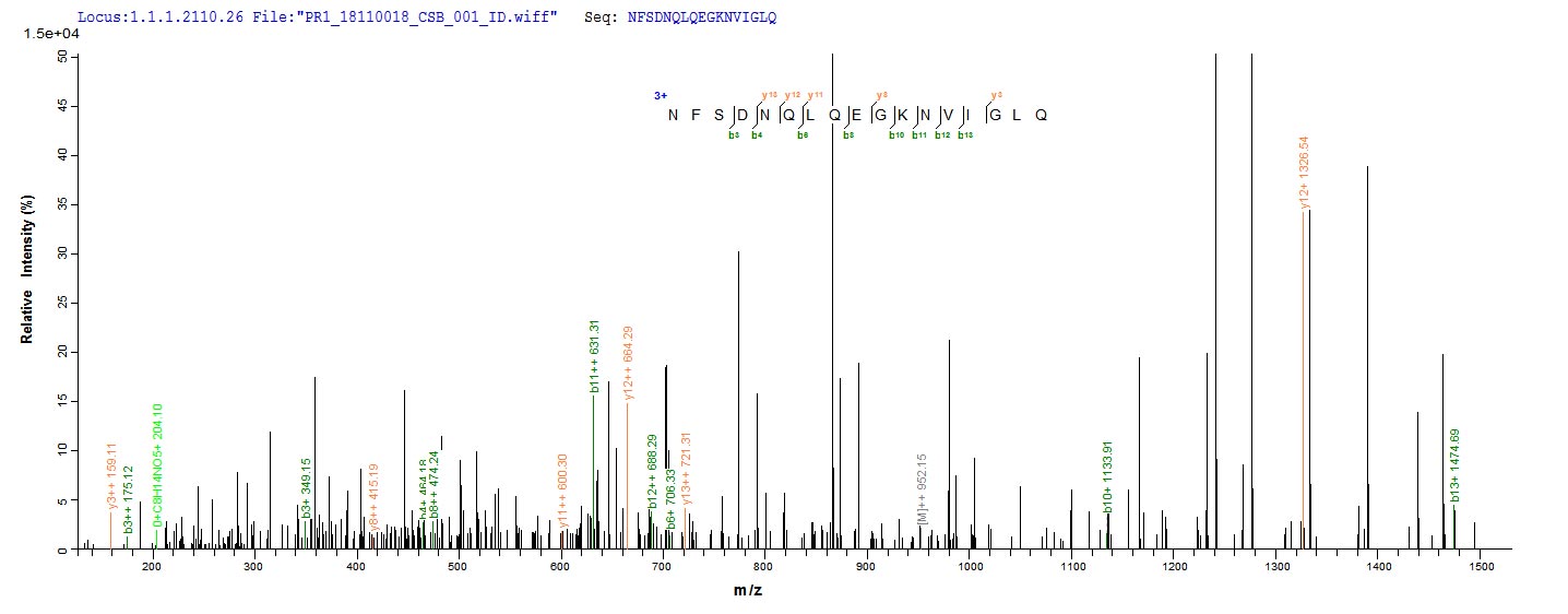 Based on the SEQUEST from database of E.coli host and target protein, the LC-MS/MS Analysis result of CSB-EP023106HU could indicate that this peptide derived from E.coli-expressed Homo sapiens (Human) TAGLN2.