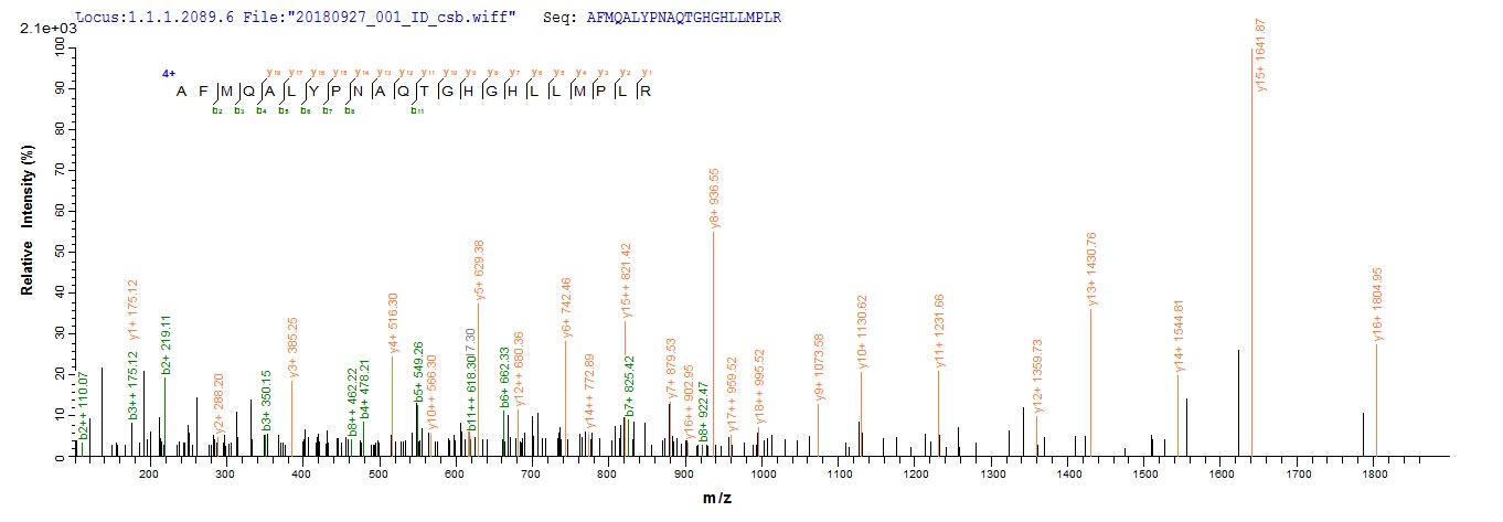 Based on the SEQUEST from database of Baculovirus host and target protein, the LC-MS/MS Analysis result of CSB-BP365892HIL could indicate that this peptide derived from Baculovirus-expressed Human adenovirus C serotype 5 (HAdV-5) (Human adenovirus 5) DBP.