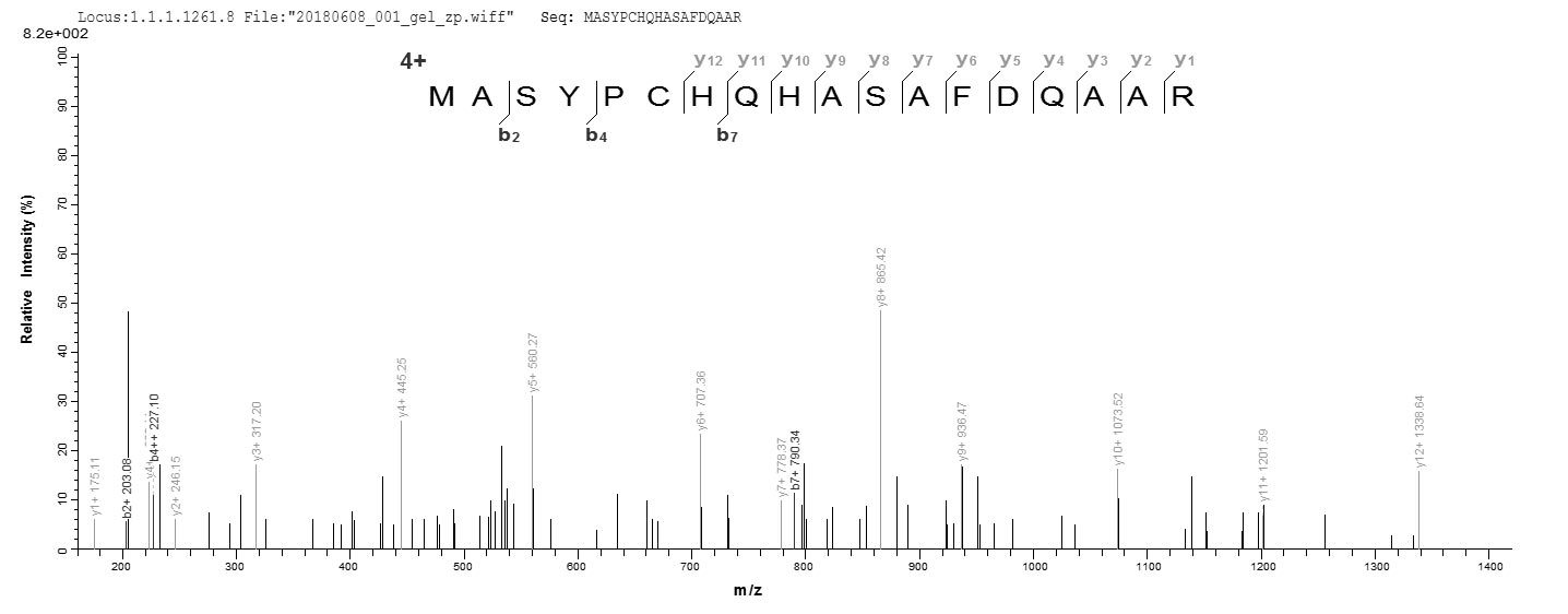 Based on the SEQUEST from database of E.coli host and target protein, the LC-MS/MS Analysis result of CSB-EP023577HWY could indicate that this peptide derived from E.coli-expressed Human herpesvirus 1 (strain 17) (HHV-1) (Human herpes simplex virus 1) TK.