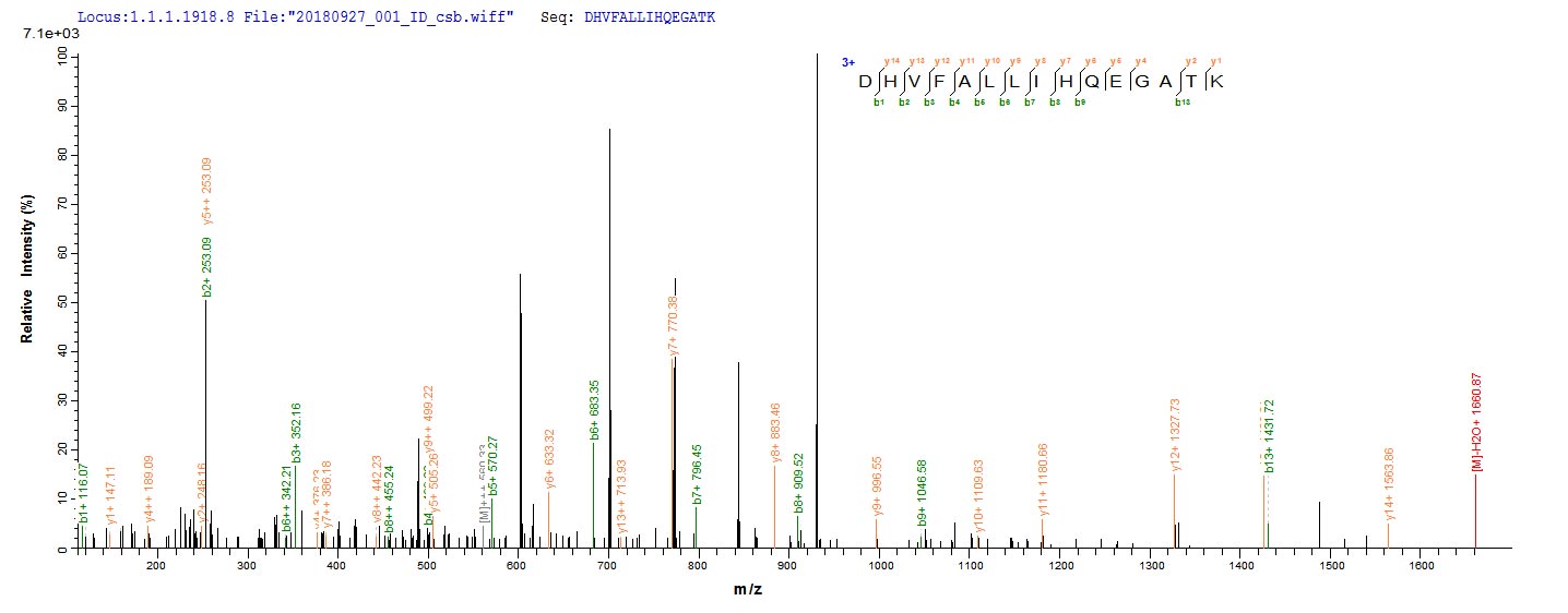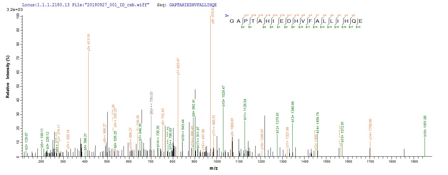 Based on the SEQUEST from database of E.coli host and target protein, the LC-MS/MS Analysis result of CSB-EP305524LDV could indicate that this peptide derived from E.coli-expressed Lentinula edodes (Shiitake mushroom) (Lentinus edodes) N/A.