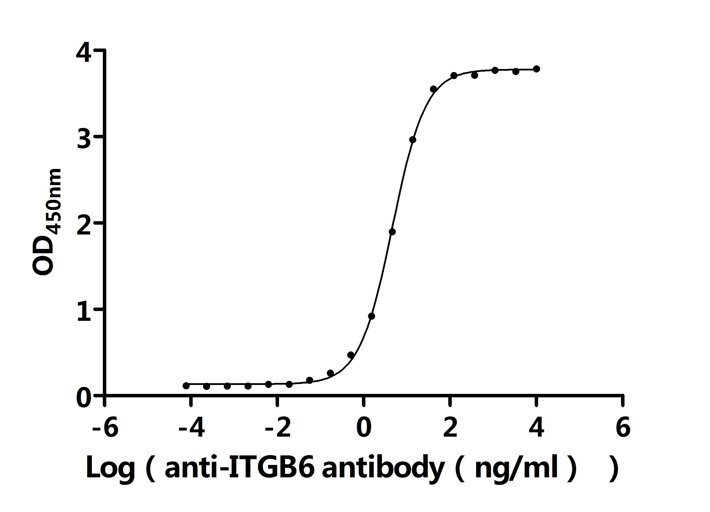 Measured by its binding ability in a functional ELISA. Immobilized Macaca fascicularis ITGAV&ITGB6 at 2 μg/ml can bind Anti-ITGB6 recombinant antibody(CSB-RA011890MA1HU). The EC50 is 4.251-5.103 ng/mL. Biological Activity Assay -