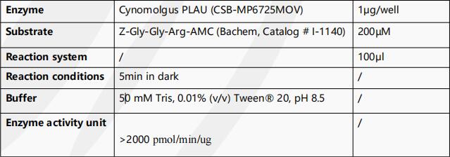 中文名稱:食蟹猴尿激酶型纖溶酶原激活物(PLAU)重組蛋白(具有活性)
