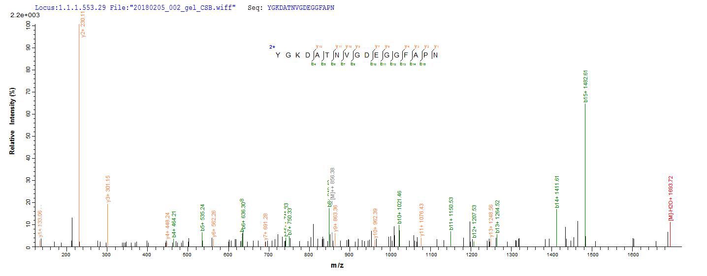 Based on the SEQUEST from database of E.coli host and target protein, the LC-MS/MS Analysis result of CSB-EP007670MOb0 could indicate that this peptide derived from E.coli-expressed Mus musculus (Mouse) Eno1.