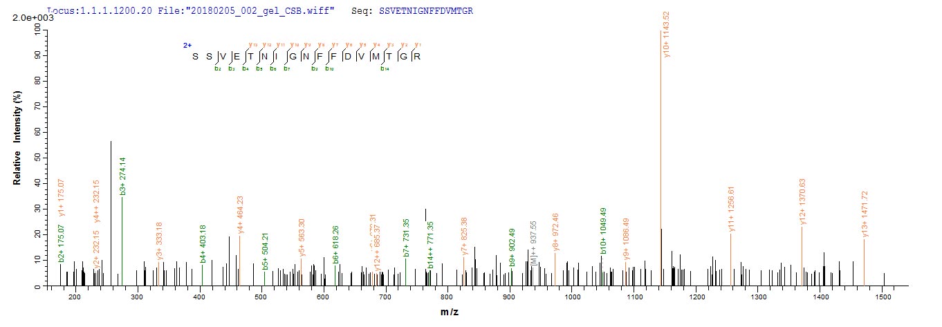 Based on the SEQUEST from database of E.coli host and target protein, the LC-MS/MS Analysis result of CSB-EP875360MO could indicate that this peptide derived from E.coli-expressed Mus musculus (Mouse) C1qtnf3.