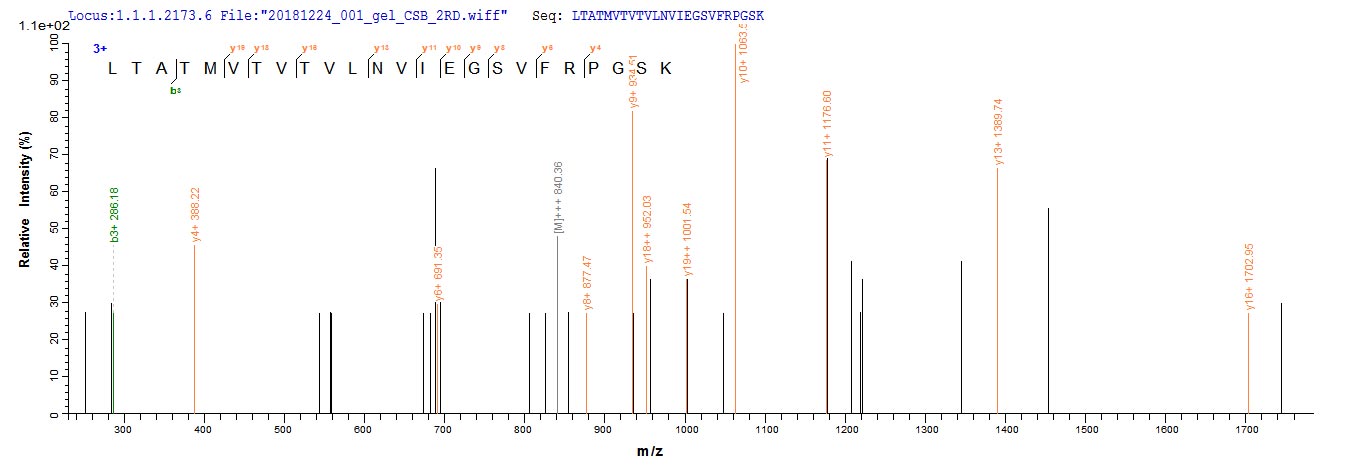 Based on the SEQUEST from database of E.coli host and target protein, the LC-MS/MS Analysis result of CSB-EP723414MO could indicate that this peptide derived from E.coli-expressed Mus musculus (Mouse) Dsg1a.