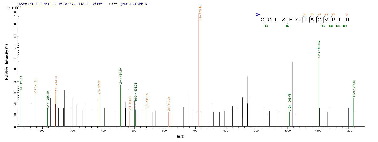 Based on the SEQUEST from database of Yeast host and target protein, the LC-MS/MS Analysis result of CSB-YP317813MO could indicate that this peptide derived from Yeast-expressed Mus musculus (Mouse) Ly6c1.