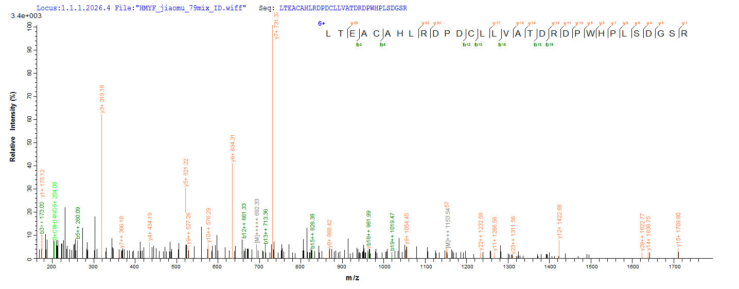 Based on the SEQUEST from database of E.coli host and target protein, the LC-MS/MS Analysis result of CSB-EP017749MO could indicate that this peptide derived from E.coli-expressed Mus musculus (Mouse) Pdxp.