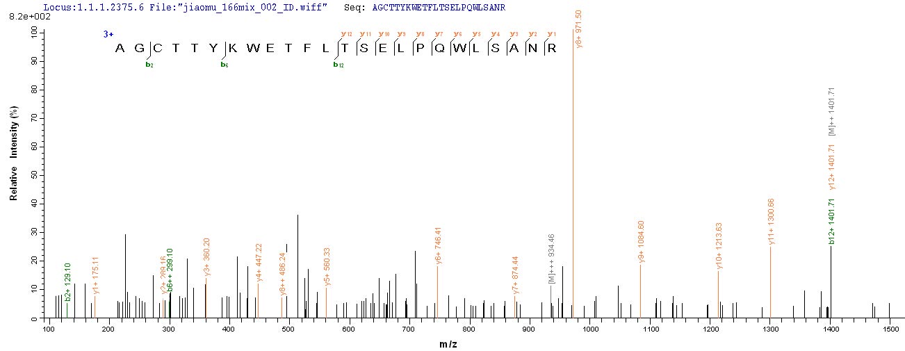 Based on the SEQUEST from database of E.coli host and target protein, the LC-MS/MS Analysis result of CSB-EP324138MKZ could indicate that this peptide derived from E.coli-expressed Mycobacterium kansasii fbpB.