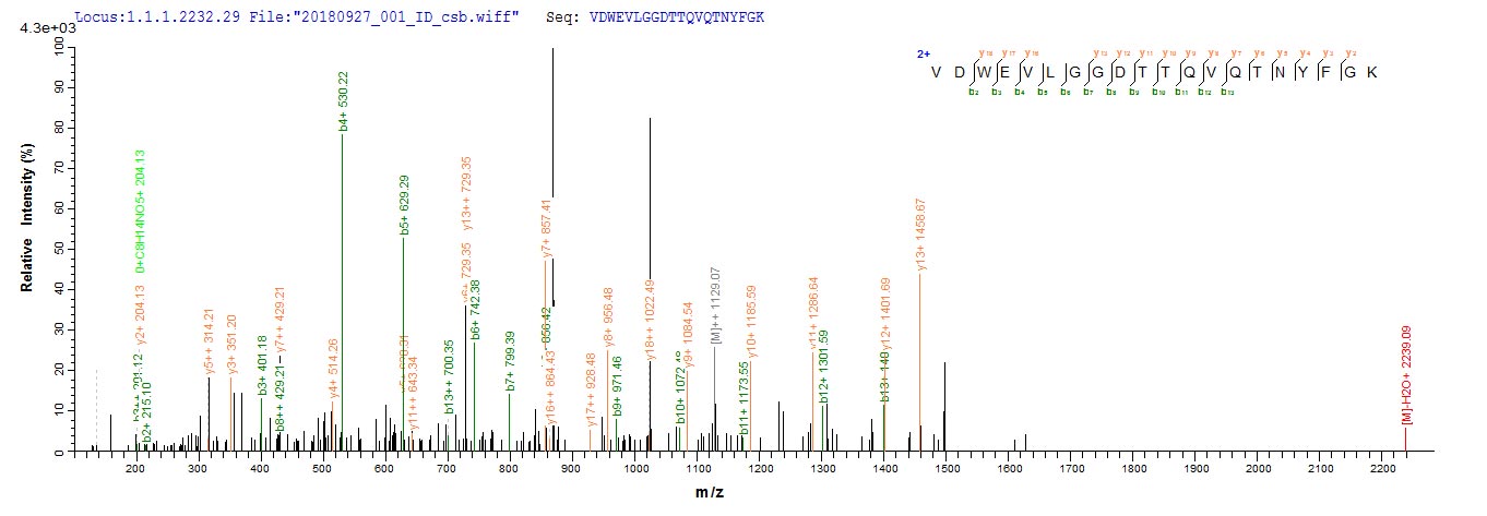 Based on the SEQUEST from database of E.coli host and target protein, the LC-MS/MS Analysis result of CSB-EP818279NGS1 could indicate that this peptide derived from E.coli-expressed Neosartorya fumigata (strain ATCC MYA-4609 / Af293 / CBS 101355 / FGSC A1100) (Aspergillus fumigatus) crf1.