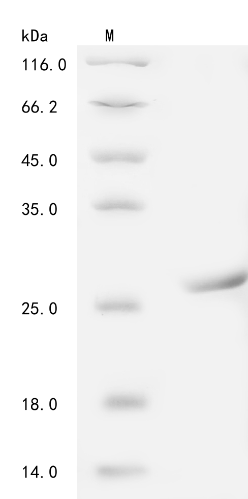 復(fù)溶:We recommend that this vial be briefly centrifuged prior to opening to bring the contents to the bottom. Please reconstitute protein in deionized sterile water to a concentration of 0.1-1.0 mg/mL.We recommend to add 5-50% of glycerol (final concentration) and aliquot for long-term storage at -20°C/-80°C. Our default final concentration of glycerol is 50%. Customers could use it as reference.