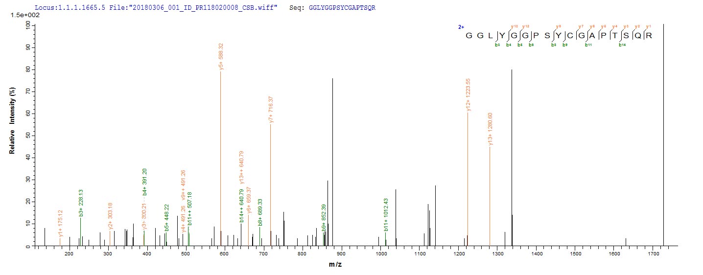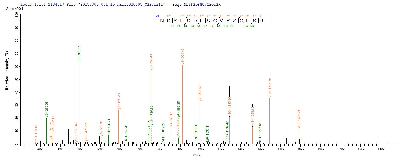 Based on the SEQUEST from database of E.coli host and target protein, the LC-MS/MS Analysis result of CSB-EP875877EZX could indicate that this peptide derived from E.coli-expressed Pseudomonas aeruginosa (strain ATCC 15692 / DSM 22644 / CIP 104116 / JCM 14847 / LMG 12228 / 1C / PRS 101 / PAO1) prpL.