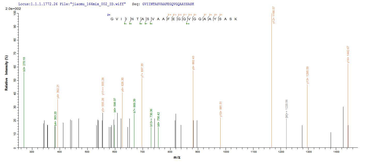 Based on the SEQUEST from database of Yeast host and target protein, the LC-MS/MS Analysis result of CSB-YP010767RA could indicate that this peptide derived from Yeast-expressed Rattus norvegicus (Rat) Hsd17b10.