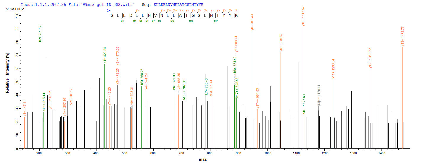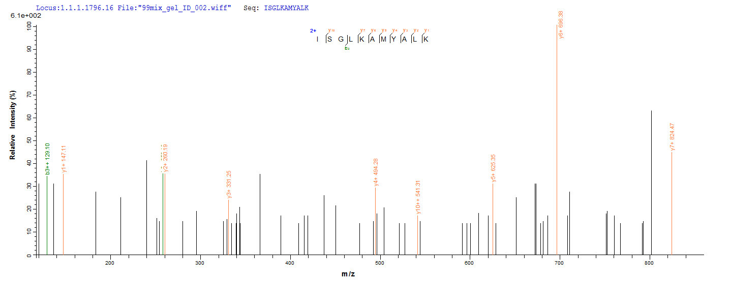 Based on the SEQUEST from database of Yeast host and target protein, the LC-MS/MS Analysis result of CSB-YP858805SKY could indicate that this peptide derived from Yeast-expressed Staphylococcus aureus (strain N315) scn.