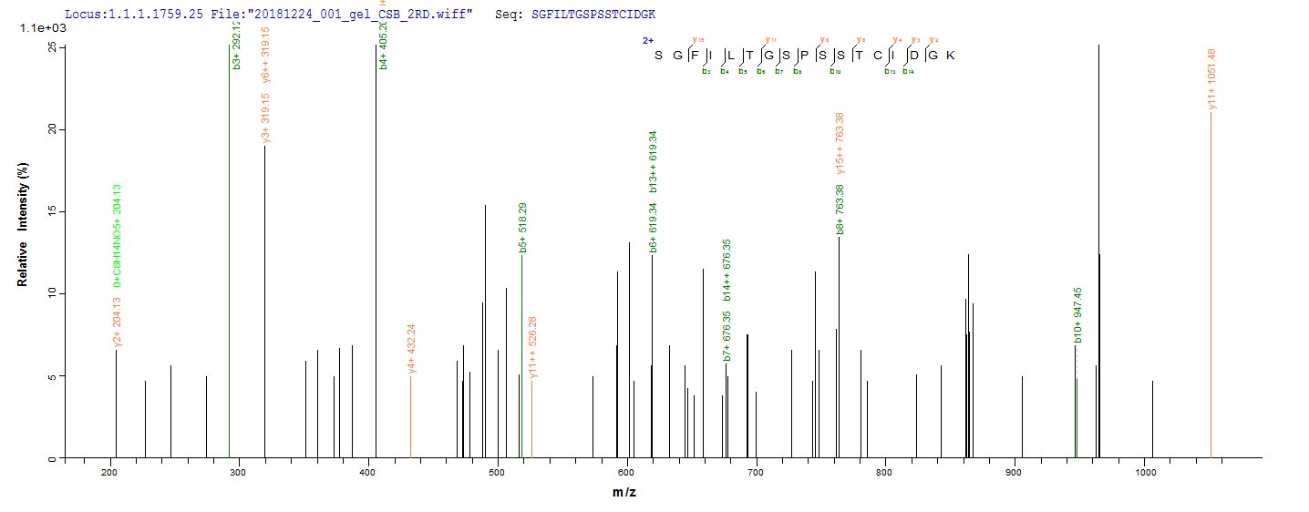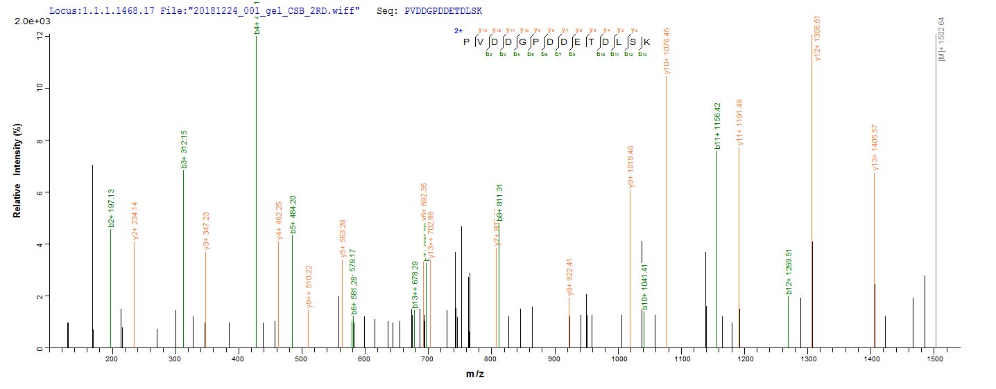 Based on the SEQUEST from database of Baculovirus host and target protein, the LC-MS/MS Analysis result of CSB-BP321891VAA1 could indicate that this peptide derived from Baculovirus-expressed Vaccinia virus (strain Copenhagen) (VACV) PS/HR.