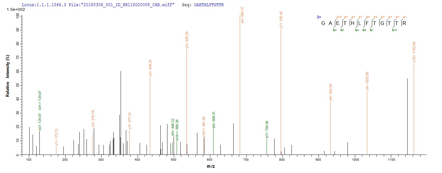 Based on the SEQUEST from database of Yeast host and target protein, the LC-MS/MS Analysis result of CSB-YP305846VDO could indicate that this peptide derived from Yeast-expressed Viscum album (European mistletoe) N/A.