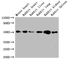 Positive WB detected in: Mouse heart tissue, Rabbit heart tissue, Rabbit liver tissue, Rabbit lung tissue, Rabbit kidney tissue, Rabbit spleen tissue