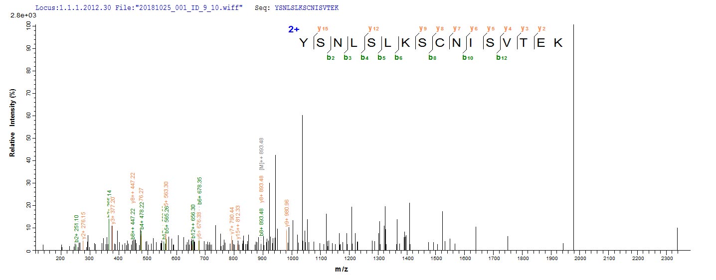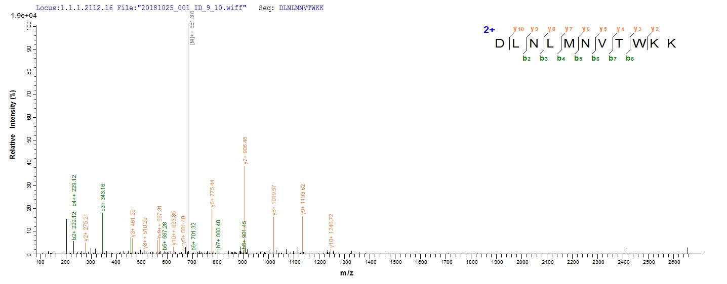 Based on the SEQUEST from database of E.coli host and target protein, the LC-MS/MS Analysis result of CSB-CF007631MO could indicate that this peptide derived from E.coli-expressed Mus musculus (Mouse) Emb.