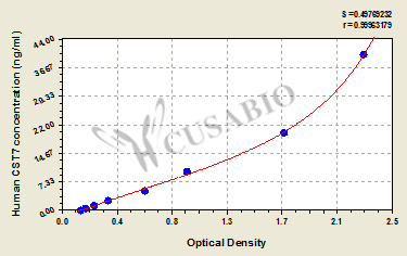 產(chǎn)品評價(jià):我用CSB-EL023433HU檢測了人血漿中TFF3的蛋白濃度,檢測的標(biāo)準(zhǔn)品吸光度OD值為0.1149,0.1472,0.3027,0.5246,0.645,1.0269,1.7359 對應(yīng)的標(biāo)準(zhǔn)品濃度分別為0,0.312,0.625,1.25,2.5,5,20ng/ml。測得的樣本濃度范圍是2.053732644-14.2