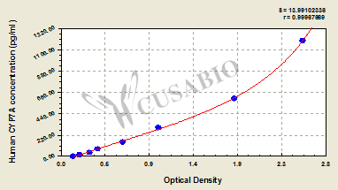 通過線性范圍來計算出實際的檢測樣本值,定量試劑盒標準曲線的相關(guān)系數(shù)R大于0.99。以CSB-E07270h(人脂聯(lián)素(ADP)ELISA Kit)為例的標準曲線。