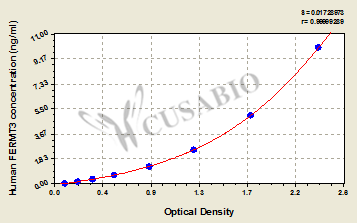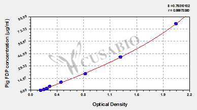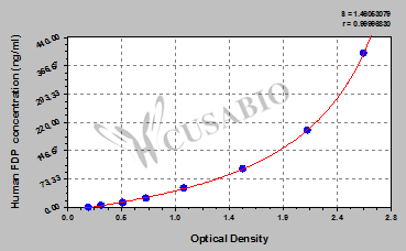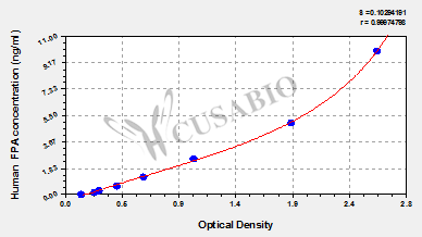 通過線性范圍來計算出實際的檢測樣本值,定量試劑盒標準曲線的相關(guān)系數(shù)R大于0.99。以CSB-E07270h(人脂聯(lián)素(ADP)ELISA Kit)為例的標準曲線。