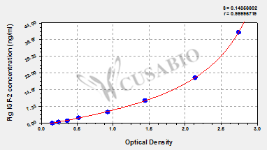 通過線性范圍來計算出實際的檢測樣本值,定量試劑盒標準曲線的相關(guān)系數(shù)R大于0.99。以CSB-E07270h(人脂聯(lián)素(ADP)ELISA Kit)為例的標準曲線。