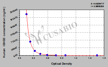 通過線性范圍來計(jì)算出實(shí)際的檢測(cè)樣本值,定量試劑盒標(biāo)準(zhǔn)曲線的相關(guān)系數(shù)R大于0.99。以CSB-E07270h(人脂聯(lián)素(ADP)ELISA Kit)為例的標(biāo)準(zhǔn)曲線。