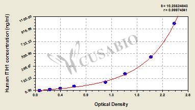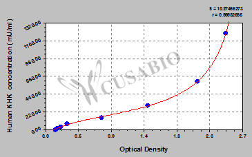 通過線性范圍來計算出實際的檢測樣本值,定量試劑盒標準曲線的相關(guān)系數(shù)R大于0.99。以CSB-E07270h(人脂聯(lián)素(ADP)ELISA Kit)為例的標準曲線。