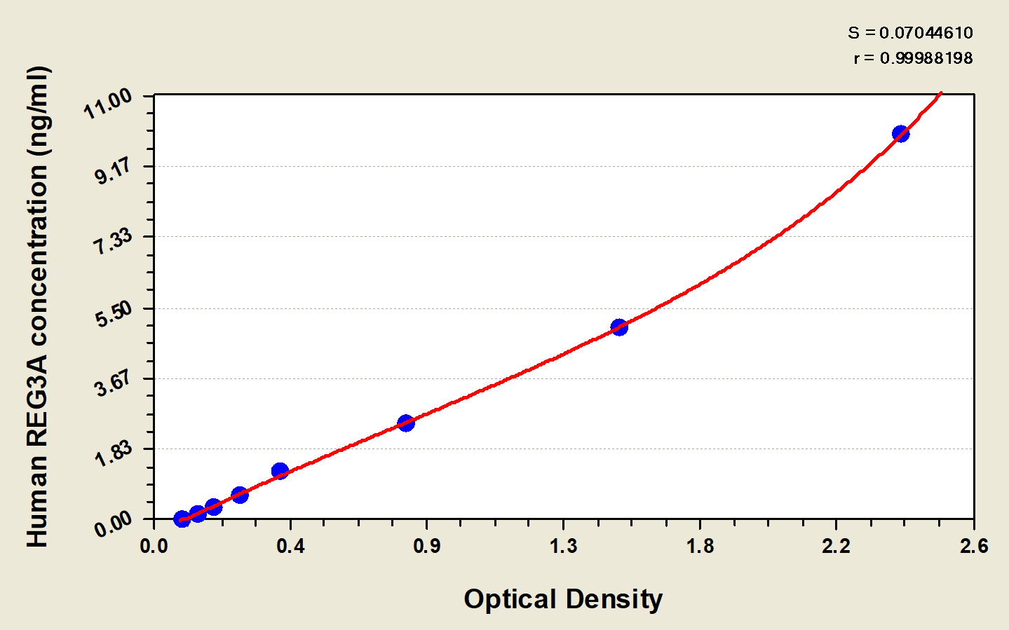 產(chǎn)品評價(jià):我用CSB-EL023433HU檢測了人血漿中TFF3的蛋白濃度,檢測的標(biāo)準(zhǔn)品吸光度OD值為0.1149,0.1472,0.3027,0.5246,0.645,1.0269,1.7359 對應(yīng)的標(biāo)準(zhǔn)品濃度分別為0,0.312,0.625,1.25,2.5,5,20ng/ml。測得的樣本濃度范圍是2.053732644-14.2
