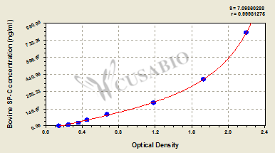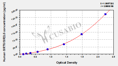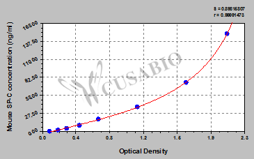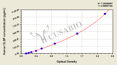 通過線性范圍來計算出實際的檢測樣本值,定量試劑盒標準曲線的相關(guān)系數(shù)R大于0.99。以CSB-E07270h(人脂聯(lián)素(ADP)ELISA Kit)為例的標準曲線。