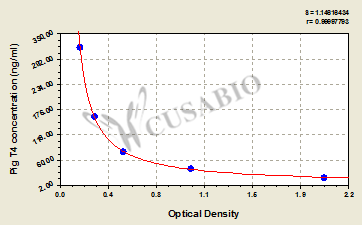 通過線性范圍來計算出實際的檢測樣本值,定量試劑盒標準曲線的相關系數(shù)R大于0.99。以CSB-E07270h(人脂聯(lián)素(ADP)ELISA Kit)為例的標準曲線。