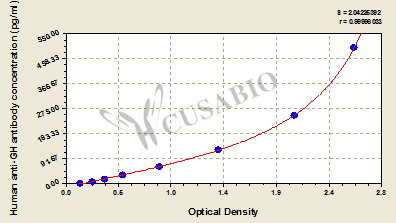 通過線性范圍來計(jì)算出實(shí)際的檢測(cè)樣本值,定量試劑盒標(biāo)準(zhǔn)曲線的相關(guān)系數(shù)R大于0.99。以CSB-E07270h(人脂聯(lián)素(ADP)ELISA Kit)為例的標(biāo)準(zhǔn)曲線。