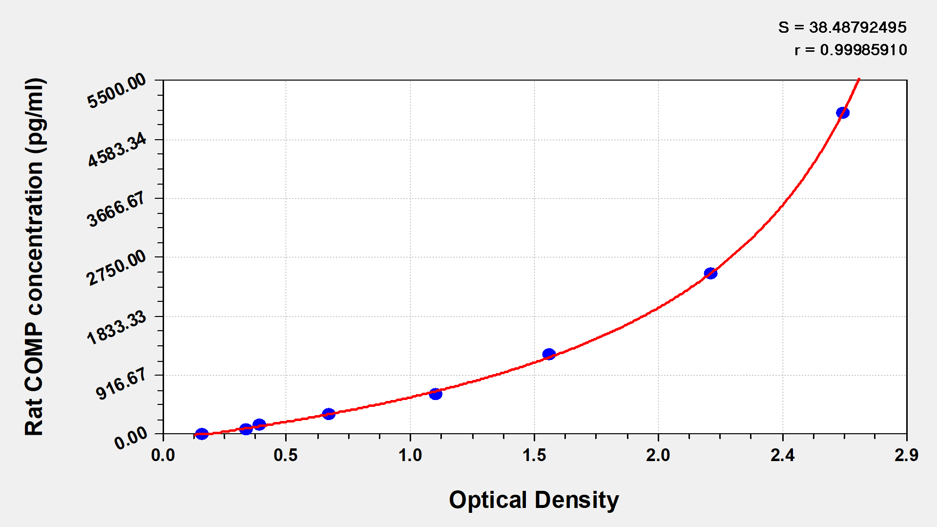 通過線性范圍來計(jì)算出實(shí)際的檢測樣本值,定量試劑盒標(biāo)準(zhǔn)曲線的相關(guān)系數(shù)R大于0.99。以CSB-E07270h(人脂聯(lián)素(ADP)ELISA Kit)為例的標(biāo)準(zhǔn)曲線。